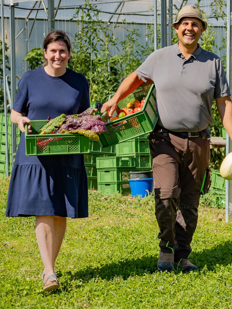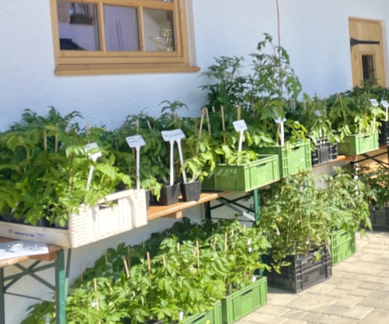 Frischer geht’s nicht! Vom Gewächshaus in den Laden: Von Juli bis September bietet unsere hofeigene Gärtnerei rund 30 Sorten alter, samenfester Tomaten und knackiges Gemüse – ungespritzt und nachhaltig angebaut. Erlebt echten Tomatengeschmack und junges Gemüse direkt vom Hof!