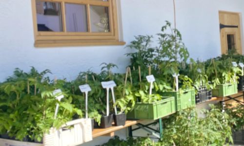 Frischer geht’s nicht! Vom Gewächshaus in den Laden: Von Juli bis September bietet unsere hofeigene Gärtnerei rund 30 Sorten alter, samenfester Tomaten und knackiges Gemüse – ungespritzt und nachhaltig angebaut. Erlebt echten Tomatengeschmack und junges Gemüse direkt vom Hof!